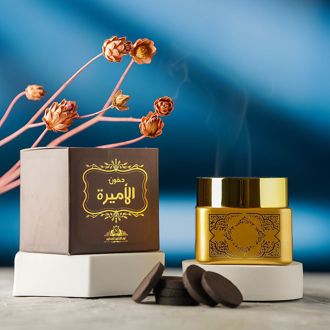 دخون الأميره . بتركيبة تمتزج بين رقة الزهر ورائحة المسك الدافئة لتلتقي أخيرا مع نفحة من رائحة العود تمنح هذا البخور الدفء والبقاء لوقت أطول
